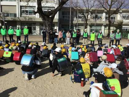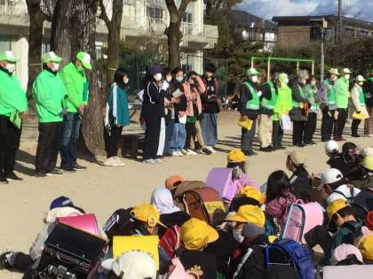 一斉下校の時間に、登下校の交通安全を見守ってくださっている交通指導員さんとセーフティさんに感謝する会を行いました。