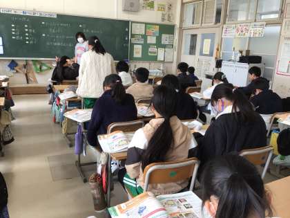 5年生の保健です。「けがを防ぐ」の単元で、交通事故でのけがを防ぐために、危険を予知し標識やカーブミラーの設置場所を考えていました。このようなトレーニングは、自分を守ることや人を傷つけないことを見通し、危険を回避する力を高めます。
