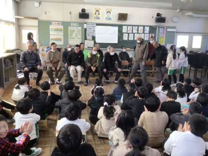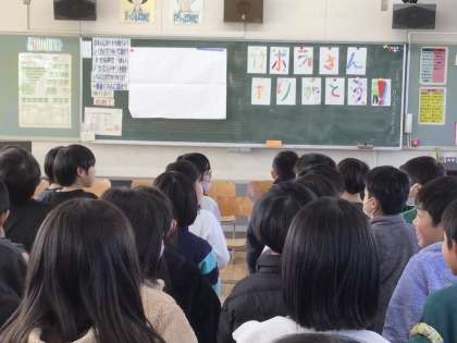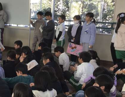 学校の環境整備や児童たちの野菜の栽培などに助言をいただいている竹ボラさんに、学校を代表して3年生の児童たちが感謝の気持ちを伝える会を行いました。