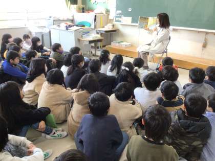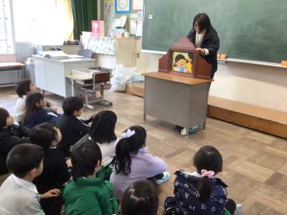 今日は、今年度、最終の読み聞かせに「赤ずきんちゃん」のみなさまが、来てくださいました。