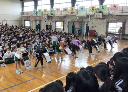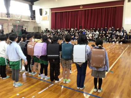 2年生は、「ありがとう」の歌と感謝のメッセージを贈りました。「ね〜」の動き、ランドセルから出てきた文字が6年生の胸に刻まれました。