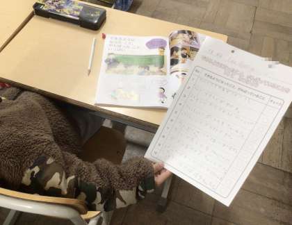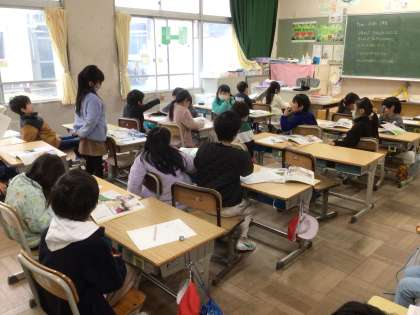 1年生の生活科です。自分やみんなのできるようになったこと、がんばったことを見つけて発表しています。たくさんのできるようになったこと、がんばったことが書かれた「みつけカード」を見せてくれた児童もいました。これからも、できること、がんばったことが増えていきます。