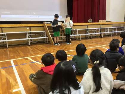 エンディングでは、4年生の児童が歌う環境問題を考える歌が流れると1年生の児童たちは手拍子をしながら聞いていました。環境問題は、世界中の人々で考えて解決していかなければいけないという児童たちの想いを大切にしたいと思います。