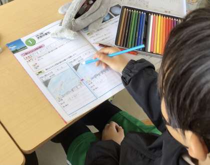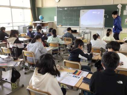 5年生の理科です。雲の様子を学習用タブレットで撮影し、時間の変化と雲の動きや形の変化を考えました。