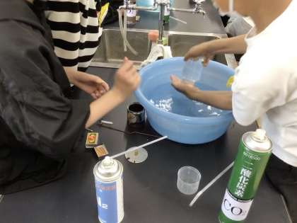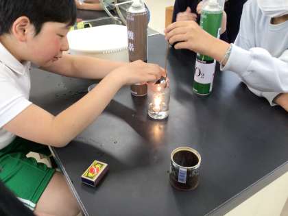 6年生の理科です。空気に含まれる3つの気体を別々に集めて、ろうそくの火がどうなるかを実験で確認しています。結果から、それぞれの気体の性質を発見します。