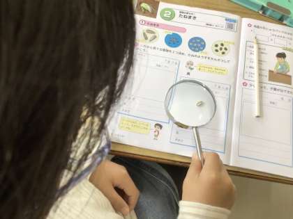 3年生の理科です。これから育てる植物の種のようすを観察しています。