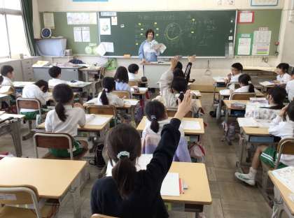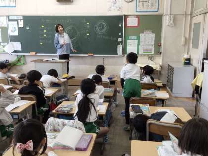 2年生の算数です。1時間は60分であることを学び、朝、起きてから学校に到着するまでの時刻から何時間かかったかを考える文章問題を解きました。答えは1つでも、答え方は3つあることを児童たちは発見しました。