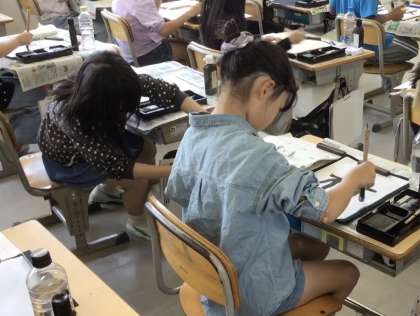 4年生の書写です。今回のお題は「林」です。「木」が「きへん」になると形がどのように変化するかを意識して練習しました。