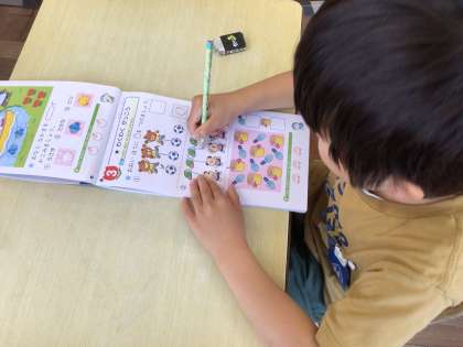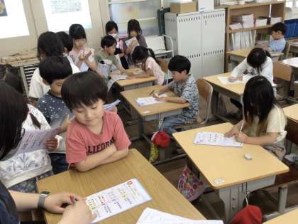 1年生の算数です。ドリルができた児童は、先生に答え合わせをしてもらいました。一人一人の児童と会話しながら、学習の習熟度を確認しています。