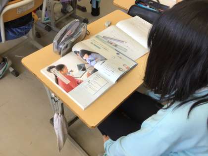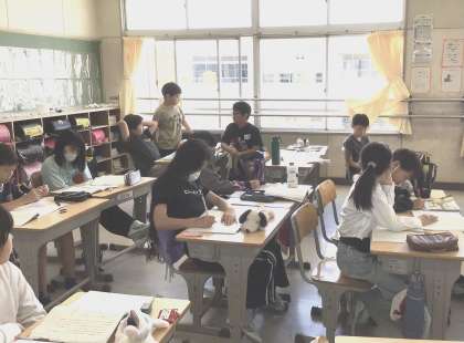 5年生の国語です。SNSについて書かれた説明文を読み、書き手の伝えたいことを読みとります。児童からは、SNSの情報を簡単に信じない、課金の問題などの意見も出され、デジタル・シティズンシップ(正しく情報を扱う力)教育ともつながる学習です。