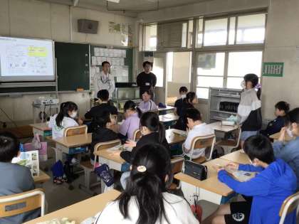 5年生の総合的な学習の時間です。トヨタ自動車の堤工場の方を講師に招いて、ビオトープに放流するメダカについて学びました。学級で飼育する水槽にメダカが放流され、産卵させてめだかを増やしていきます。