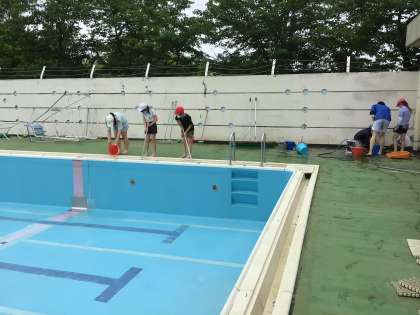 今日は、5年生がプール掃除を行いました。昨日の6年生のあとを引き継いで、隅々まできれいにしました。いよいよ、6月から水泳学習が始まります。