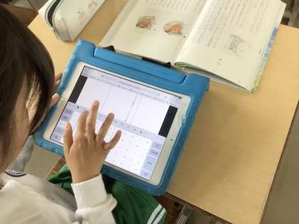 4年生の国語です。説明文を学習した後、その説明文を引用して伝える方法を学びました。説明文を読んで、みんなに伝えたいことを自分の意見と引用文を交えて発表ノートに文章を書きました。