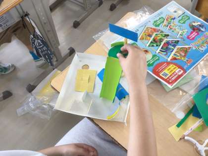 4年生の図工です。「コロコロガーレ」という教材を使って、ビー玉を転がす作品を作成しています。ビー玉が、どんな冒険をするのか楽しみです。