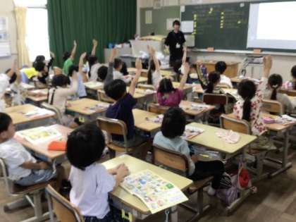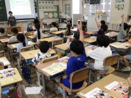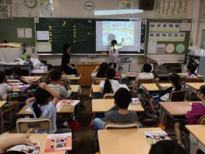 1年生の道徳です。いろいろなことをしている場面の図の中から、よいことやよくないことをしているシーンを見つけています。集団生活の中でのルールやマナー、心づかいを考えることができた授業でした。