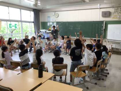 座席を円の形にして、学級活動をしています。楽しく活動をしていました。このような活動で、仲間とのきずなが深まったり、仲間の新しい一面を知ったりすることができ、学級づくりが深まっていきます。