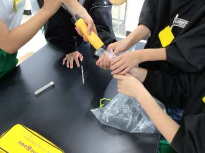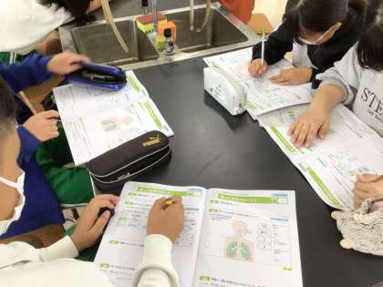 「吸った空気のゆくえ」の単元で、呼吸について実験しています。石灰水や二酸化炭素検知管、酸素検知管で調べた結果、どんなことが分かったでしょうか。