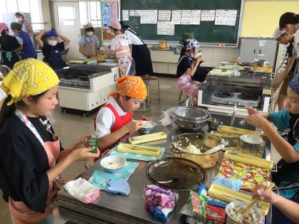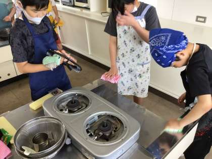 食べた後は、グループで協力して後片付けです。準備から片付けまでが、調理ですね。