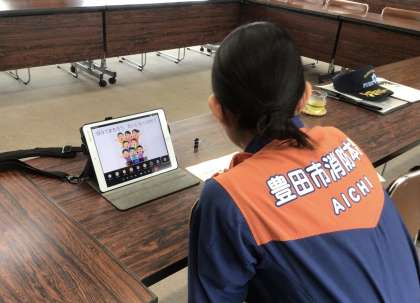朝の会の時間に、豊田南消防署の方に熱中症予防についてのお話をしていただきました。