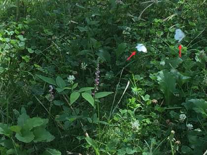 成虫になったモンシロチョウを自然に返しました。校庭を歩いていると校内の花壇で飛んでいるモンシロチョウをたくさん見つけました。