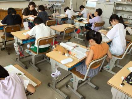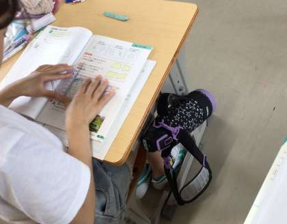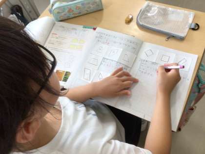 「辺の並行に目を付けて四角形を調べよう」をめあてに、四角形の仲間分けをしています。三角定規を使って並行を調べる方法を使い、四角形を台形や平行四辺形などに仲間分けしています。