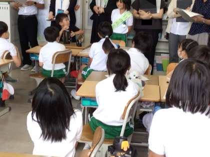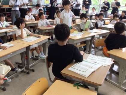 竹村小学校の先生、他の学校の先生たちが参観している中で、児童たちははりきって話し合い活動を進めていました。