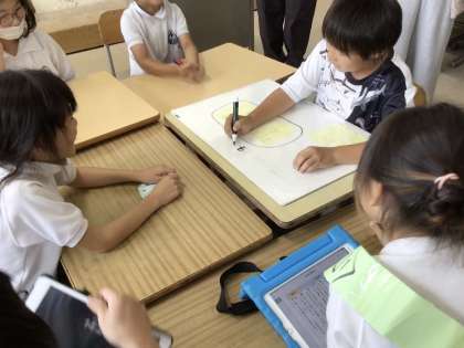 グループで話し合い活動を行いました。司会係の児童による話し合いの進め方や自分の考えの伝え方、仲間の意見の聞き方を学びました。意見を聞くだけでなく、「付箋」や「まなボード」といった教具を使って、意見を整理していきました。