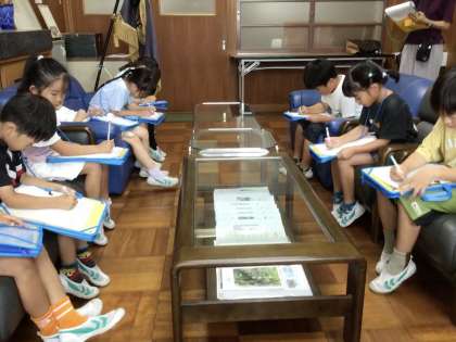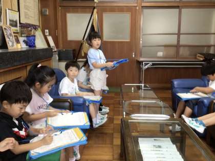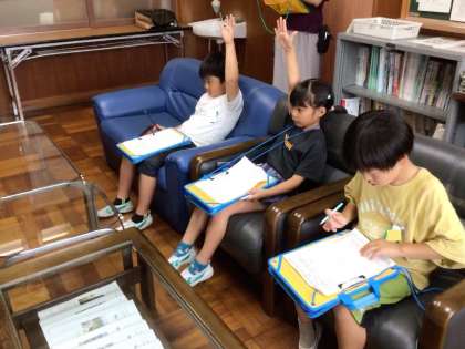 「せんせい いんたびゅー」で、校長室で質問をしました。事前に考えてきた質問を大きな声ではっきりと言うことができました。質問の答えもがんばってメモをとりました。