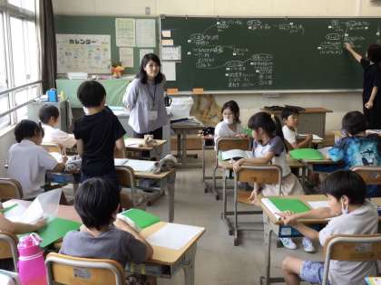 「食」をテーマに、探究活動をしています。今回は、栄養教諭に給食について疑問に思っていることを質問して、教えていただきました。次々に質問が出て、児童たちの疑問の答えで、どんどん黒板が埋まっていきました。