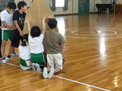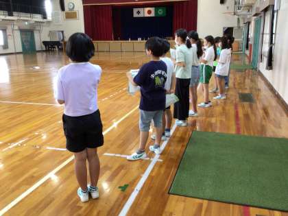 野外学習に向けて、体育館で活動しています。詳細は、野外学習で。