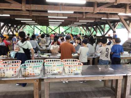 ファミリーサイトへ移動して、火起こし体験とカレーライス作りです。