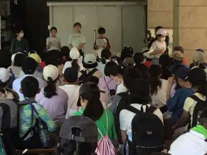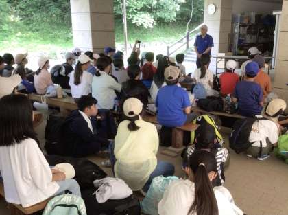 1泊2日の野外学習、六所山の総合野外センターでの最後のプログラムは、退所式です。お世話になった所員の方に感謝の気持ちを伝えました。2日間、ありがとうございました。