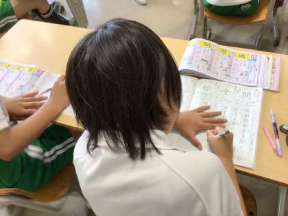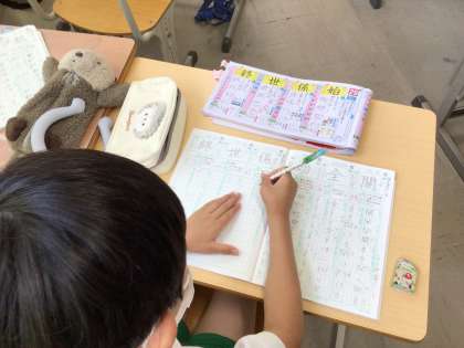 漢字ドリル用のノートを活用して、何度も繰り返して漢字練習をしています。新しく書いたり、読んだりすることのできる漢字が増えていきます。