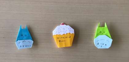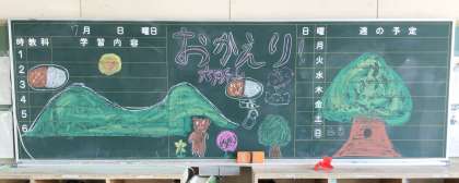 朝、黒板を見ると、6年生からの黒板メッセージやねぎらいの気持ちのこもった折り紙が届いていました。うれしい、心づかいです。