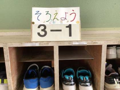 下足箱に、整とん係が作ったメッセージがはられています。整とんすると気持ちよく生活ができますね。
