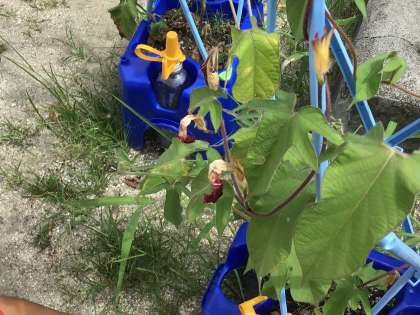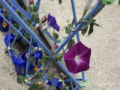 アサガオの水やりを続けています。咲いている花の色を教えてくれた児童もいます。枯れた花を見て、残念がっている児童もいます。花が枯れた後も観察は続きます。