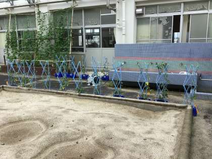 昨日の大雨、風に備えて鉢を建物近くに移動させました。夏休みにも観察を続けます。学年だよりで、アサガオの鉢の持ち帰りのお知らせをします。ご協力をお願いします。
