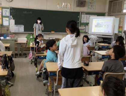 天気の学習です。台風についても学びました。今週は雨が降ったり、台風5号が発生したりしました。理科で学んだことと実際の生活を結び付けて考えることができました。、