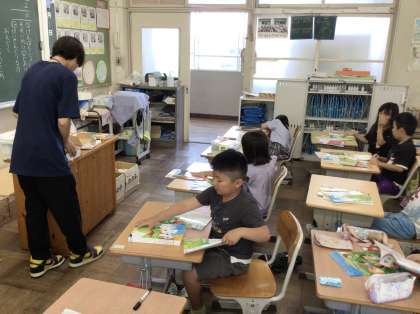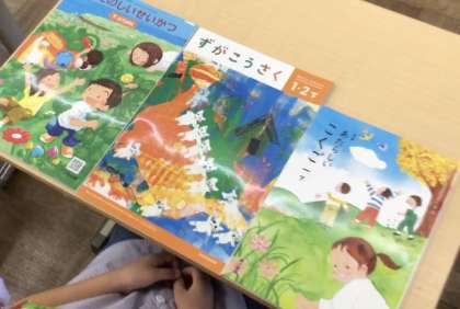 学年ごとに、「下」の教科書を配布しました。「上」の教科書が終わると「下」の教科書を使っていきます。