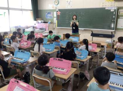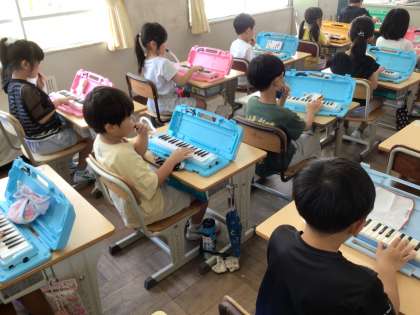 音楽関係の企業の方を講師にお招きして、鍵盤ハーモニカ講習会を行いました。鍵盤ハーモニカの使い方や演奏の仕方、手入れの仕方など、わかりやすく教えていただきました。これから、いろいろな曲が弾けるようになるのが、楽しみです。