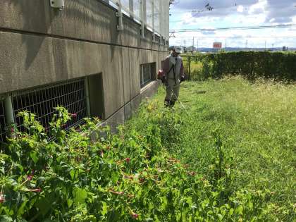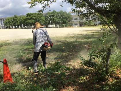 火曜日は、竹ボラさんが来てくださり、学校の整備を行っていただいています。今日は、夏休みの間に伸びた草を刈っていただいたり、中庭の花壇の整備をしていただきました。