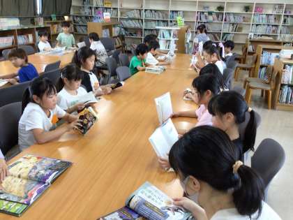 朝額の時間に、夏休み前に借りた本を返却に行きました。その後、図書室で朝の読書タイムを過ごしました。