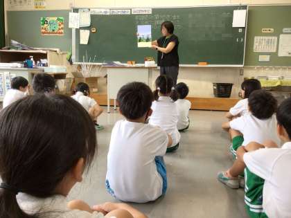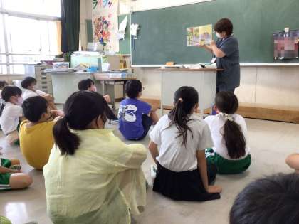 キャンプや昆虫採集の話、透明人間やカッパが出てくる話などに、児童たちは笑ったり、つっこみを入れたりして楽しくお話を聞かせていただきました。中には、大阪弁や英語で語られるお話もありました。「赤ずきんちゃん」のみなさま、ありがとうございました。