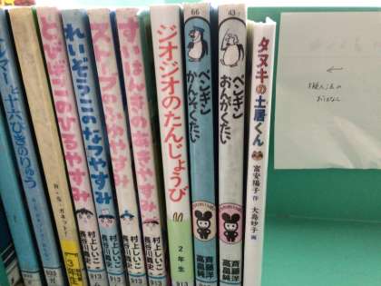 他の学年の廊下にも、授業に合わせて選定された本が用意されています。授業の準備の手助けをしていただき、ありがとうございます。