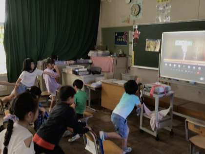 学校でも朝の会の前に、エクササイズを継続して正しい姿勢づくりに取り組んでいきます。