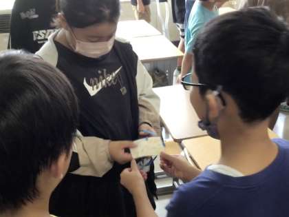 明日から出かける修学旅行に向け、なかよし活動で同じ班の5年生からお守りをもらいました。お守りに書かれた後輩からのメッセージを読み、うれしそうです。明日からの修学旅行、元気に行ってきます。