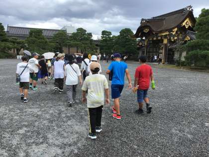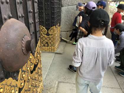 二条城では、ウグイス張りの廊下で特徴的な音を聞きました。日本の歴史の移り変わりとなる出来事の展示も見学しました。