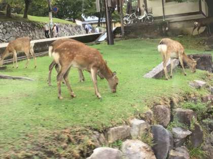 鹿がいます。いよいよ旅館へ、到着です。