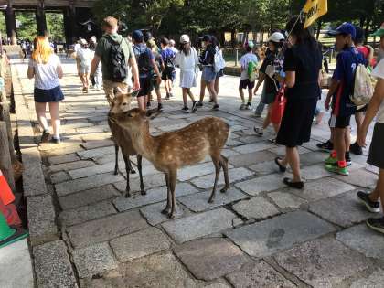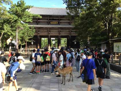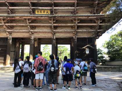 スタートの大仏殿を目指しています。南大門で、解説を聞きました。
