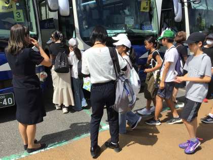 時間通りに集合できました。今からは、バスで移動して昼食です。
